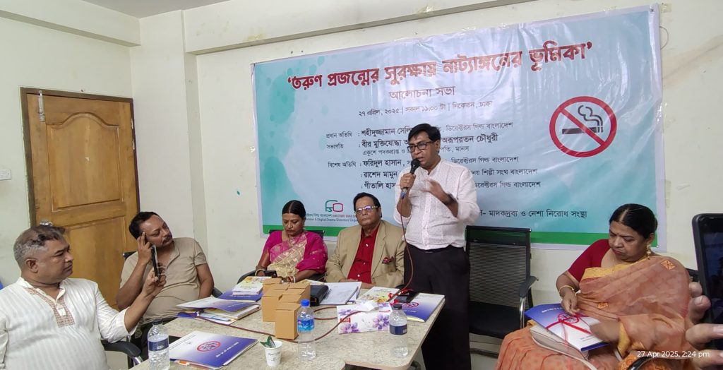 Professor Dr. ArupRatan Choudhury said that drama and film creators, actors, and the general public are all aware of the harms of tobacco and smoking. However, due to manipulations by tobacco companies, it has become difficult to reduce tobacco use, leading to greater addiction among youth. He noted that drug addiction often starts with smoking among adolescents and youths. Therefore, drama creators, artists, and all concerned must act responsibly as part of their social duty to raise awareness among the youth. Only then can Bangladesh move forward on the path to prosperity.